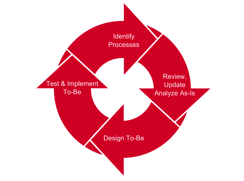 سازمان فرایند محور بایستی همواره در بهسازی فرایندهای خود بکوشد زیرا این رویکرد کاری پیوسته و مداوم است. بنابراین عمده فعالیت مدیریتی این گونه سازمانها اداره و پیشبرد درست فرایندها در بالاترین توان آنها، بهره گیری از فرصتها در بهسازی فرایندها، و پیگیری در کاربرد فرصتها است. فرایند محوری یک طرح موقتی نبوده، بلکه راه و روشی دائمی و فراگیر است.
