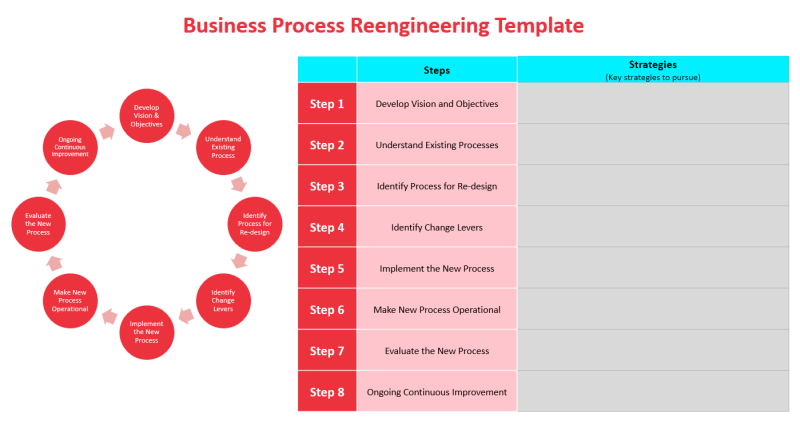 شرکتها باید از خود بپرسند اگر با آگاهیهای گسترده امروزی و در اختیار داشتن تکنولوژیهای نوین، می خواستیم شرکتی برپا کنیم، آنرا چگونه می ساختیم. مهندسی مجدد فرایندها یک شرکت به معنای کنار گذاشتن سیستم موجود و بر پا کردن نظامی نوین است. نیازمند بازگشت به آغاز کار و ابداع روشها و راههای بهتری برای انجام کار است و بواقع بازگشتی بسوی فرایندهاست.