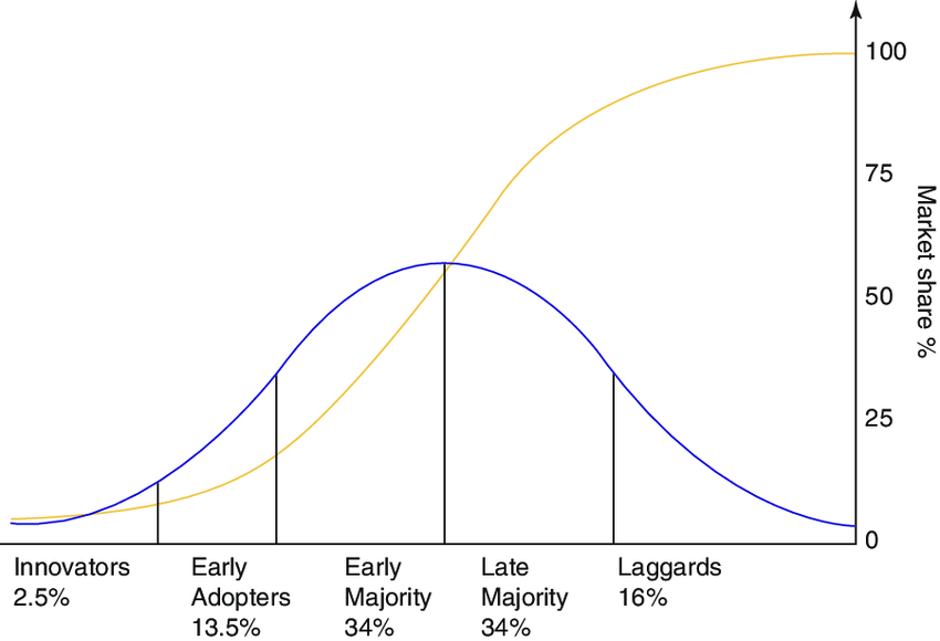 تحقیقات پیشین درباره اشاعه فناوری می تواند به ویژه در فهم چالش دفاع در برابر مشابه سازی توسط رقبای شرکت سودمند باشد. مطالعات نشان داده اند که ایده ها و نوآوری ها با الگویی که شباهت به «منحنی S شکل» است در پهنه اقتصاد تکثیر می شوند. بنا به این منحنی برای مدت زمانی نسبتا کوتاه از 0t تا 1t نوآوری ها ممکن است تحت تملک یک یا تعداد بسیار اندکی از شرکت ها باشند، ولی نقطه ای خاص – 1t در این نمایه - فرایند تکثیر یا اشاعه آغاز می شود. تا 2t در نمایه، تقریبا همه شرکت های بازار یا کل اقتصاد این نواوری را در اختیار گرفته اند. این الگوی پذیرش (در اختیار گرفتن) را در ابتدا فقط یک شرکت یا سازمان های بسیار کمی یک نوآوری خاص را به کار می گیرند، ولی بزودی تقریبا همه شرکت ها آن نوآوری را به کار می گیرند تقریبا در میان همه نوآوری ها دیده می شود.