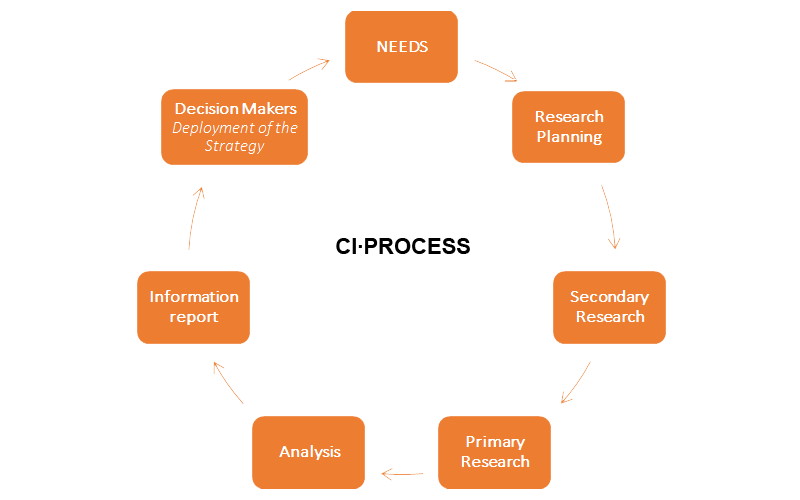 فرایند هوشمندی رقابتی چرخه مداومی است که به طور کلی شامل چهار مرحله اساسی است: